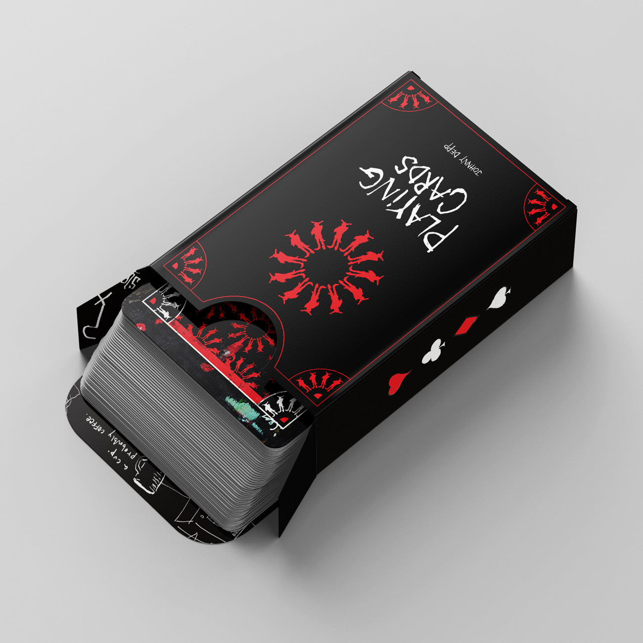 この美しい54枚組トランプの裏面にはジョニーの「The Bunnyman」モチーフ、表面には複数の異なるアートワークが配されています。